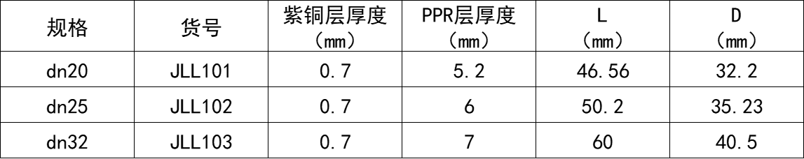 • 颜色: 海湖蓝• 压力等级: S2.0• 原材料:T2紫铜含铜量不低于99.9%,北欧化工PPR原料颗粒、进口热熔胶• 执行标准:GB/T1176-2013、GB/T1527-2017、GB/T18742-2017• 卫生性能许可标准:《生活饮用水卫生监督管理办法》• 卫生性能优点:杀菌、抑菌、环保、内管壁永不结垢,杜绝二次污染• 物理性能优点:工作压力80kg检测压力180kg、且柔韧性佳有效减少水锤现象爆管发生几率、耐温100摄氏度、热膨胀系数低热水管不弯曲、导热系数021w/mk保温性能优、通径无堵塞水流量更大、百分之100遮光阻止氧化防止紫铜腐蚀、百分之100阻氧阻隔细菌和微生物生长条件。• 安装方式:热熔承插,产品有锥度导向设计专利会主动校准。• 适用场景: 直饮水、全屋净水、活水、反渗透水、软水、实验室用水、医院手术室用水等等对水质有特殊要求的水管输送场景。